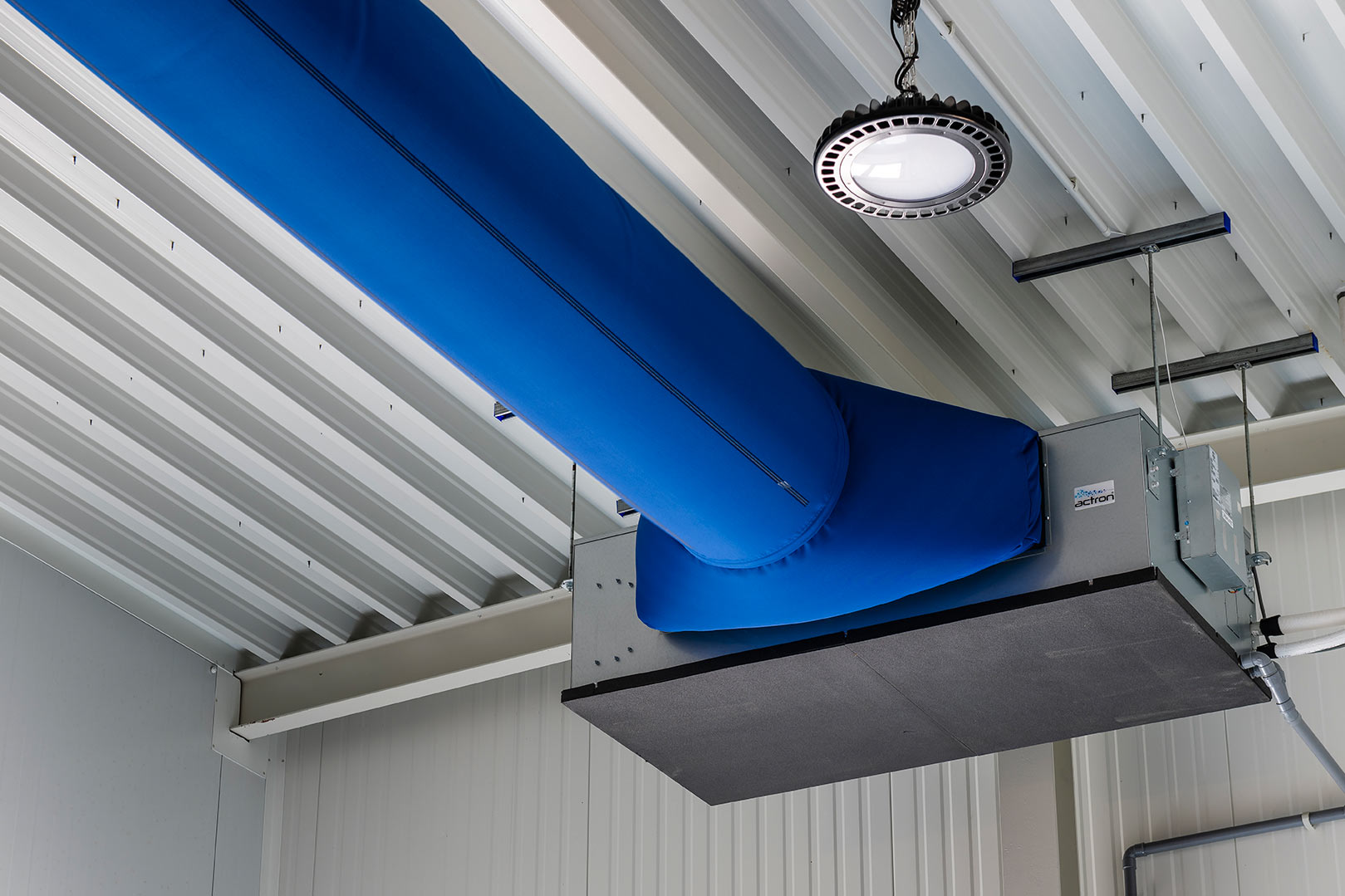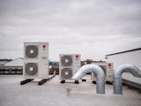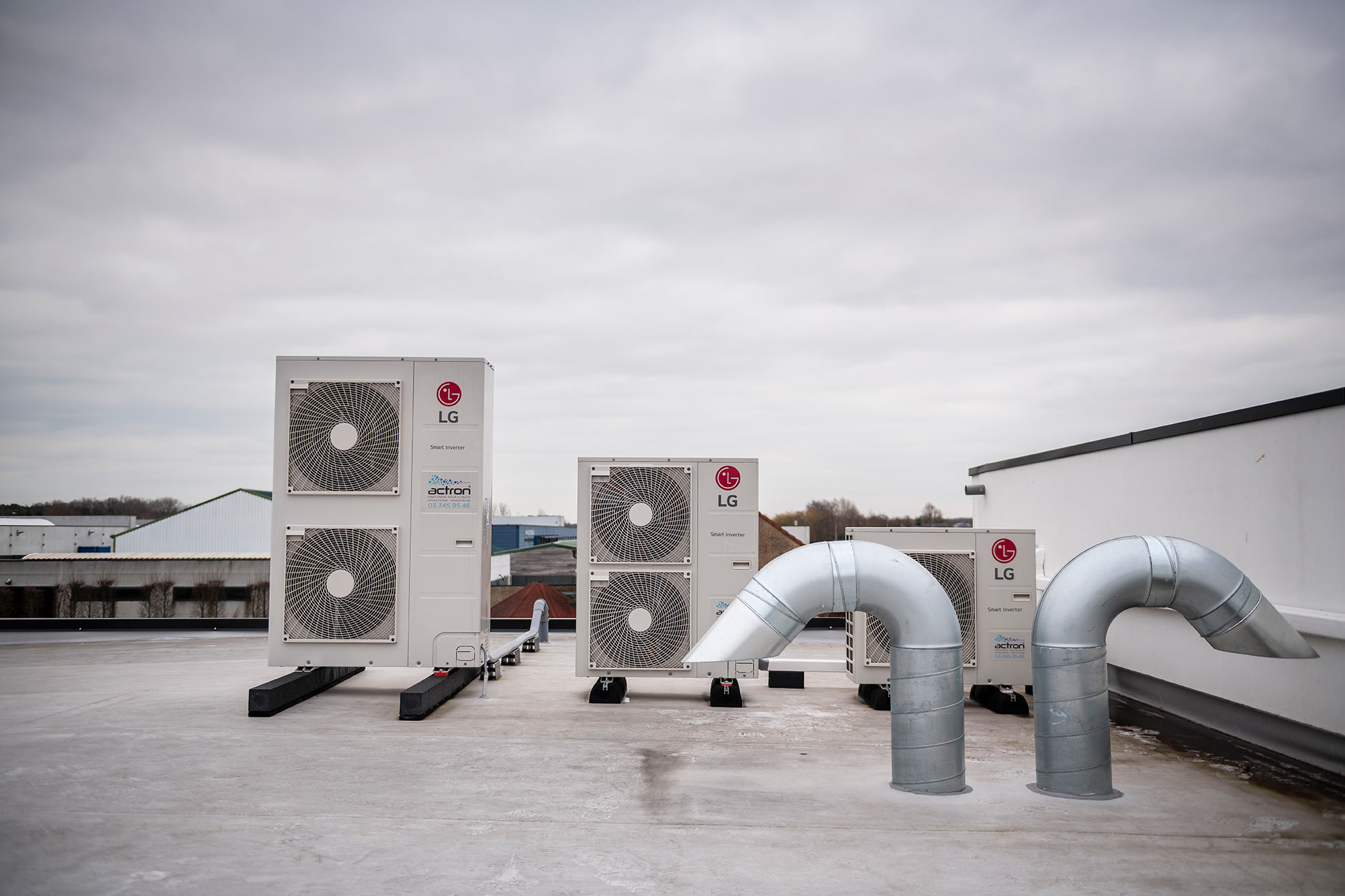 De nieuwe gebouwen van Aerts Speculaas kregen meteen het ideale koelings- en verwarmingssysteem van LG. De buitenunits werden op het dak gemonteerd. In de productieruimte koos Aerts in overleg met onze installateurs voor LG UB85N94-kanaalunits. Met blauwe textielkanalen, die bovendien matchen met de blauwe eploxyvloeren, werd voor een gelijkmatige luchtverdeling gezorgd. De knappe afwerking leverde mooie resultaten op en draait intussen al een tijdje vlekkeloos. Koelen én verwarmen, LG verzekert beide en op de gewenste temperatuur. “Vooral die constante temperatuur is belangrijk in onze bakkerij”, zegt zaakvoerster Els Aerts. “Op dat vlak lost LG de verwachtingen zeker in. Bovendien hebben we geen last van storende koude luchtstromen.”