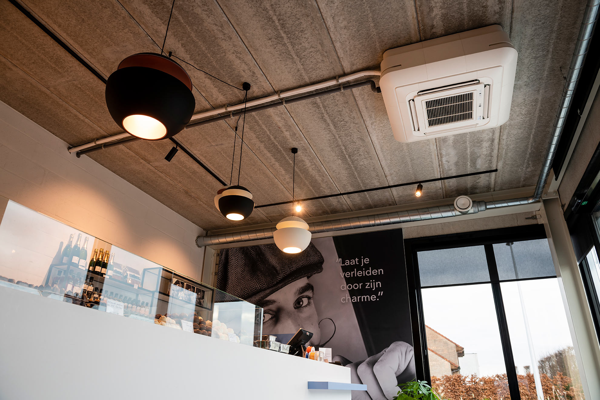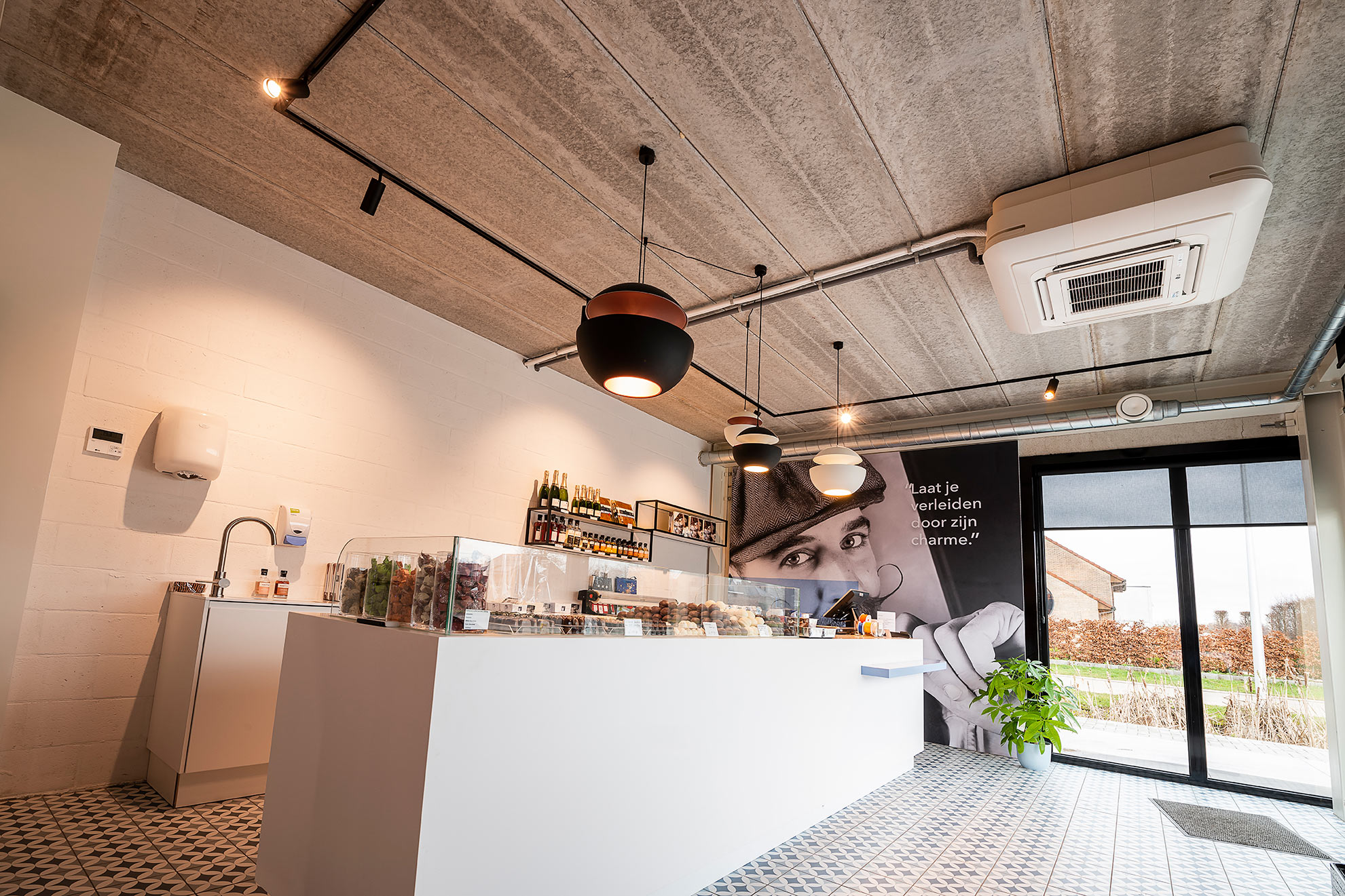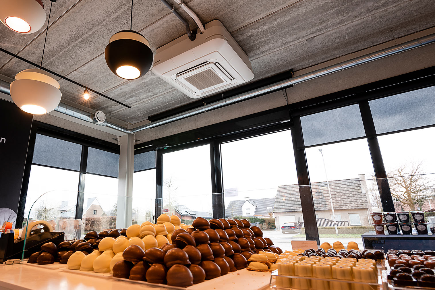Voor de kantoren én het winkelgedeelte kozen ze bij Aerts doelbewust voor de industriële look. De plafondcassettes CT18NQ4 en CT09NR2 werden gemonteerd en aan de zijkanten afgewerkt met de gebruikelijke covers. Daardoor blijft de industriële look intact, maar ziet het geheel er toch keurig uit. De koekjes met chocolade hebben de ideale temperatuur om verpakt en verkocht te worden. “De toestellen in onze winkel en burelen presteren niet alleen prima, het ziet er ook goed uit”, voegt Aerts nog toe.