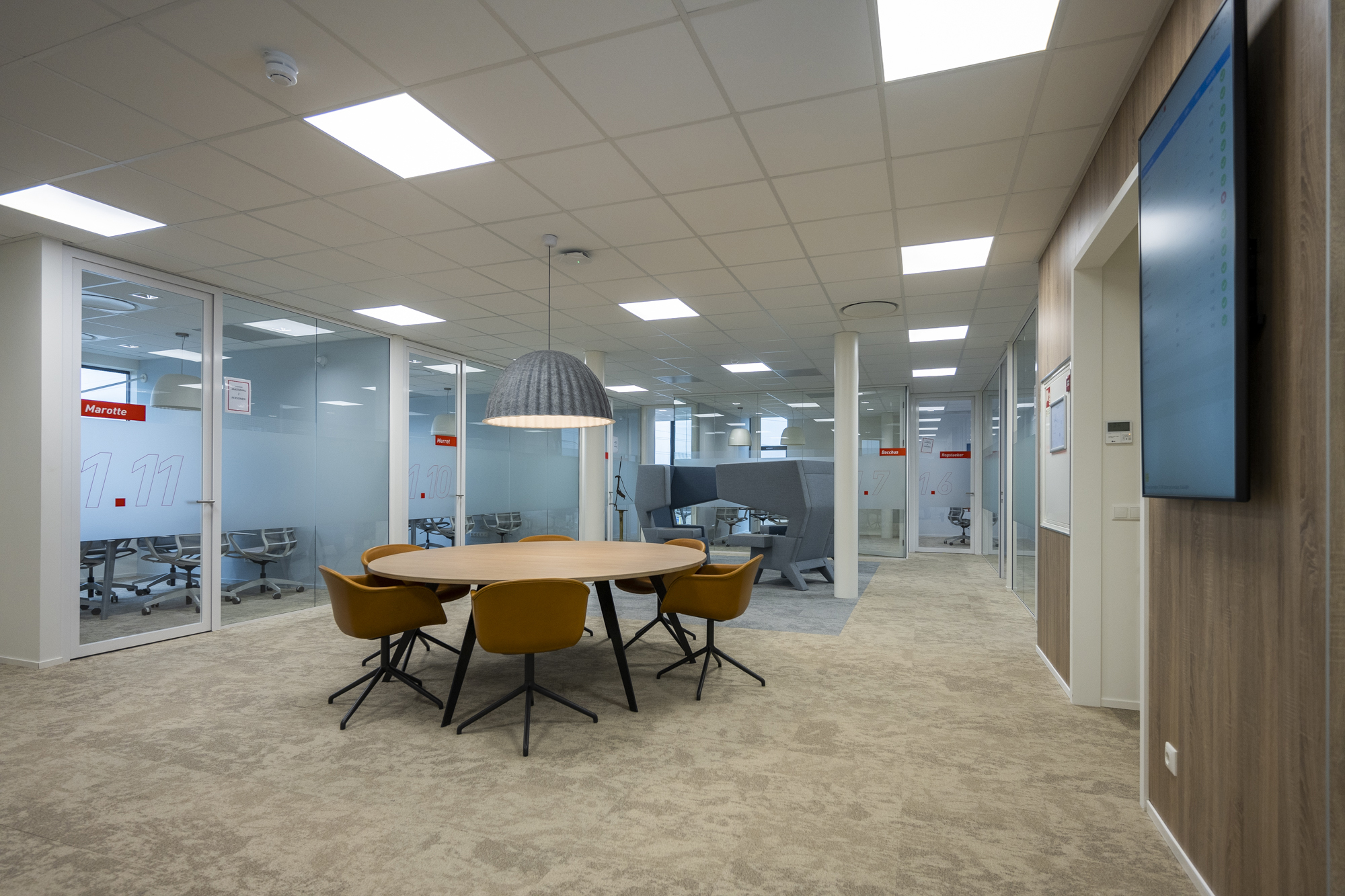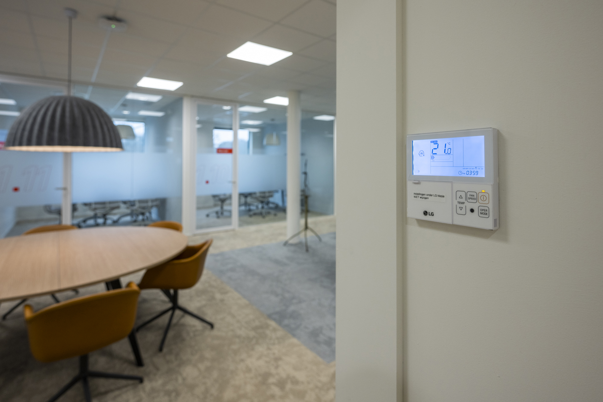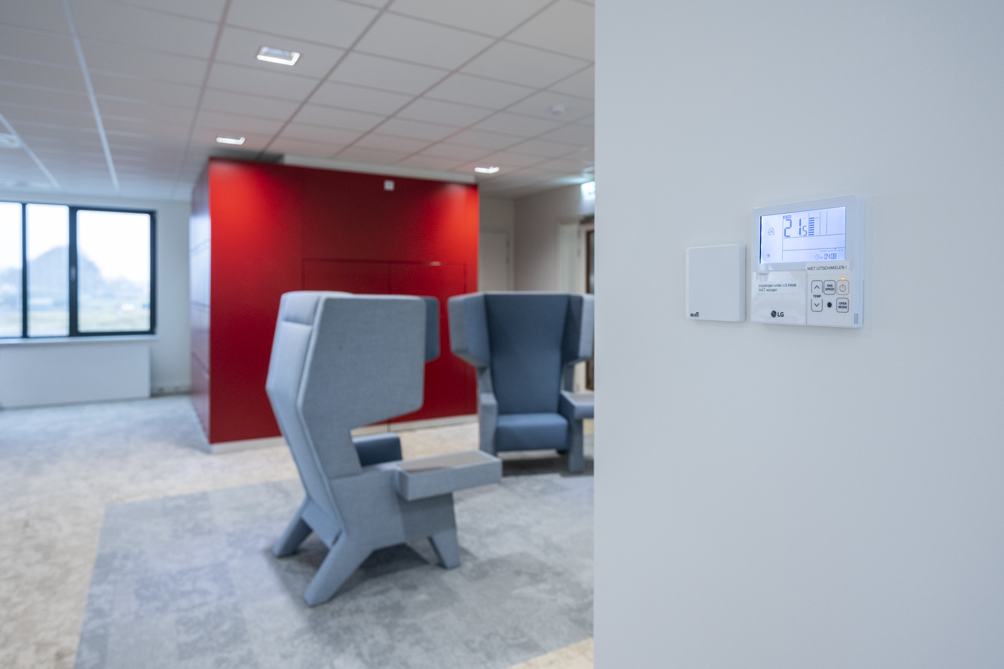 Het pand kent dankzij de heat recovery-techniek van de Multi V 5 heel weinig warmteverlies. Daardoor is ook ’s winters de behoefte om te verwarmen heel laag. De beschikbare warmte wordt als het ware het gebouw rondgepompt. En als er ergens toch meer warmte of koude nodig is, wordt de buitenunit erbij betrokken om daar de koude of warmte vandaan te halen. Zo is iedere collega van Koenen en Co verzekerd van een comfortabel binnenklimaat.