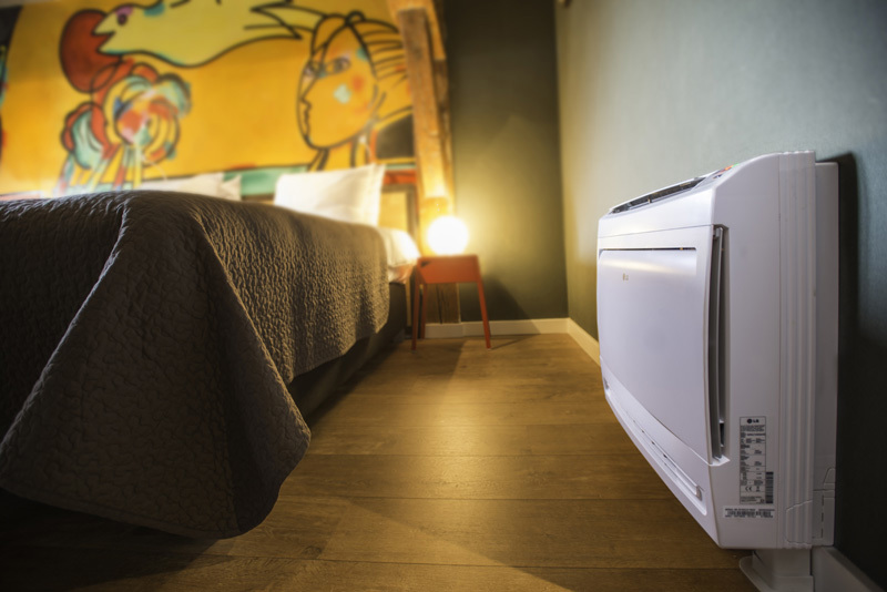 Omdat duurzaamheid voor de eigenaressen van De Gravin hoog in het vaandel staat, is dit klimaatsysteem perfect. De warmteterugwinning maakt dit systeem zeer energiezuinig. Ook de manier waarop de airco’s in het plafond en de wand zijn weggewerkt, vallen in de smaak. Iets wat natuurlijk ook belangrijk is bij een hotel dat zich profileert op het mooie design. Of zoals eigenares Judith van de Windt zelf zegt: ‘Het moet er natuurlijk wel mooi uitzien, passend bij het pand’. Voor de gasten van De Gravin is het een groot voordeel dat ze de temperatuur op hun kamer zelf kunnen regelen. Inmiddels heeft het hotel al een koude herfst en winter en het staartje van de zomer achter de rug en het klimaatsysteem doet wat het belooft: een optimaal klimaat bieden voor elke gast.