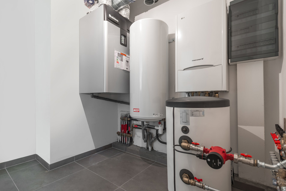Bij aanvang van de studie, in de ontwerpfase, ontdekten we al snel dat bij de installatie van warmtepompen een aantal andere kosten vermeden konden worden zoals reglementaire schouwen voor de individuele appartementen of voor het geheel van het gebouw, de inrichting van een stookplaats met verluchting, bijkomende meterkasten enz.