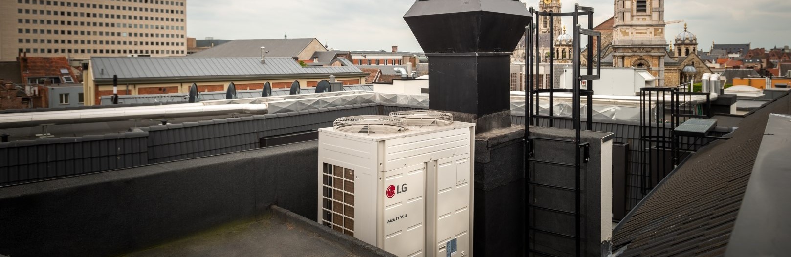 De werkzaamheden voor het ideale binnenklimaat gingen van start. De buitenunits werden geplaatst op het dak, waarbij een eerste installatie werd voorzien voor de voorbouw en een tweede installatie voor de achterbouw. Technische schachten en de montage van meerdere compacte HR-boxen werden deskundig bepaald, waardoor ruimte, installatietijd en geld werd bespaard. Wanneer elke centimeter telt, is het LG Multi V HR-systeem ideaal.