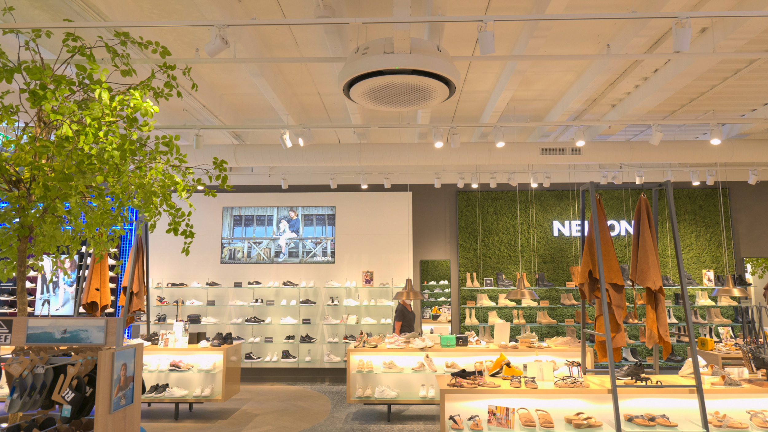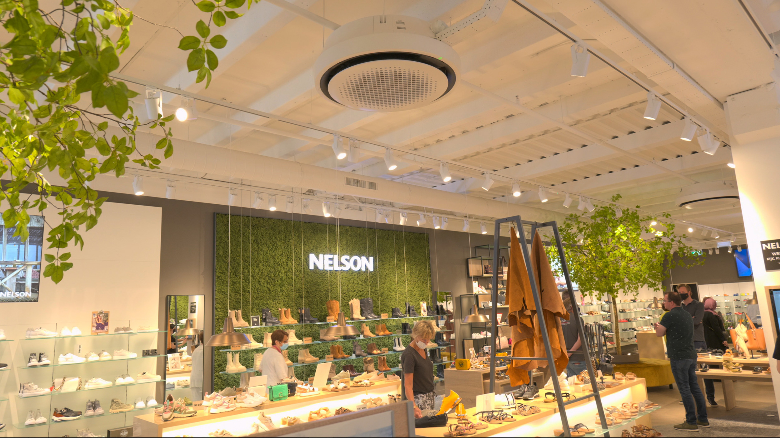 Omdat de ronde cassettes in de winkel nagenoeg geen geluid produceren, merken de klanten van Nelson Schoenen enkel de comfortabele temperatuur op. In combinatie met de moderne uitstraling van de LG Round Cassette, zorgt dit voor een prettige winkelervaring voor de bezoeker als voor de medewerkers.