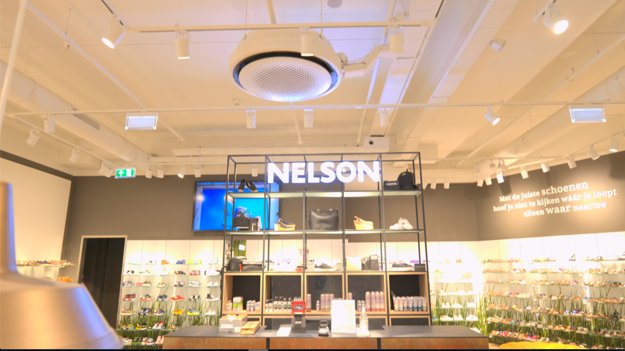 Eén van de nieuwe premium winkels van Nelson Schoenen is gevestigd in De Westfield Mall of the Netherlands in Leidschendam. Dit moderne winkelcentrum is in maart 2020 geopend in de buurt van Den Haag. Vanwege de eigentijdse uitstraling van het winkelcentrum, ging Nelson Schoenen op zoek naar de juiste klimaatoplossingen om zowel de nieuwe winkel als het bijbehorende magazijn eenvoudig te koelen en verwarmen.