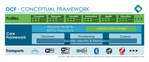 Suite au fait que les plates-formes propres faisaient obstacle à la connectivité, l’Open Connectivity Foundation (OCF) fut créée en 2015. Cette organisation œuvre à la mise en place d’un fonctionnement sécurisé des systèmes d’exploitation open source pour les consommateurs, les entreprises et l’industrie. Ils offrent une solution standard dénommée IoTivity*, qui se base sur la technologie open source. Ainsi, des milliards d’appareils, qu’il s’agisse d’appareils ménagers ou de systèmes HVAC, peuvent être reliés à un environnement IoT, peu importe le système d’exploitation ou le protocole.