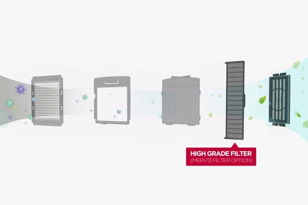 La solution LG DX ERV avec qualité de filtration MERV13 garantit un apport d'air frais dans les grands espaces.
