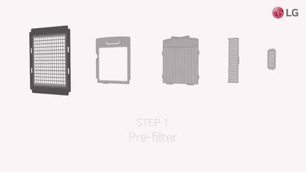 Le système de filtration puissant à 4 étapes intégré dans les cassettes de LG garantit un air intérieur sain. Le système est composé d'un préfiltre, d'un filtre à poussière, d'un filtre à poussière ultrafine et d'un filtre antiodeurs. Le processus de filtration commence par le préfiltre qui, à l'aide de sa structure multicouche, retire les plus grandes particules de poussière. Lorsque les particules fines sont passées par le préfiltre, l'air est filtré davantage grâce à la force électrostatique. Lors de la troisième étape, le filtre à poussière ultrafine finira par enlever 99,9 % des particules PM 1.0. Finalement, le filtre antiodeur élimine les mauvaises odeurs et les gaz nocifs dans l'air par absorption.