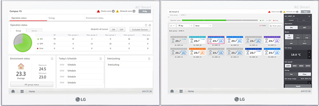 Dankzij de intuïtieve besturingsinterface van LG’s AC Smart 5 kunnen gebouwbeheerders het energiebeheer in hun gebouwen volledig beheren. Zij zijn namelijk in staat om bewerkingen en aanpassingen in verschillende gebouwen en op verschillende verdiepingen te beheren vanuit een of meerdere locaties en apparaten. Hierdoor worden de activiteiten beter gestroomlijnd. Daarnaast is het Multi V-systeem nauwkeurig te regelen dankzij de uitgebreide smart planning en analyse van AC Smart 5.