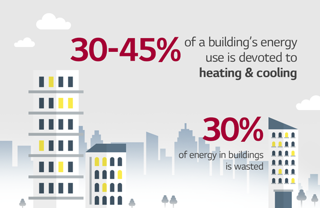 Hoewel het ontwerp en de gebruikte materialen tijdens de bouw het energieverbruik in een gebouw kunnen verminderen, moet effectieve en efficiënte apparatuur een primaire factor zijn bij het overwegen van een HVAC-installatie. De meest efficiënte manier om de energierekening te verlagen is namelijk via apparatuur die voldoet aan de behoeften en eisen van gebruikers, die past binnen het ontwerp van gebouwen en tegelijkertijd het energieverbruik drastisch terugdringt. LG is al jaren bezig met de ontwikkeling van de meest effectieve oplossingen.