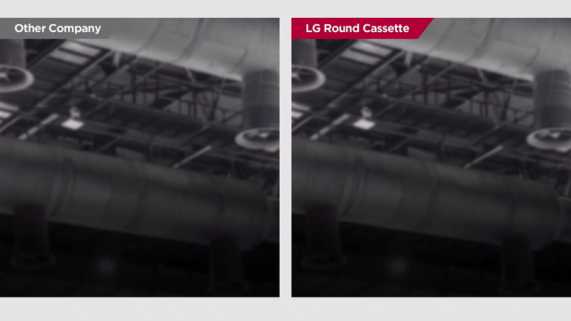 Binnendelen die compact en intuïtief ontworpen zijn vereenvoudigen de installatie en het onderhoud. Innovatieve units zoals de LG Round Cassette zijn bovendien voorzien van functies zoals eenrichtingsleidingen, waarbij leidingen voor condens afvoer en koudemiddeltoevoer gebundeld zijn. Deze configuratie maakt het voor installateurs makkelijker om tijdens het onderhoud toegang te krijgen tot belangrijke onderdelen en het verkort de installatietijd.
