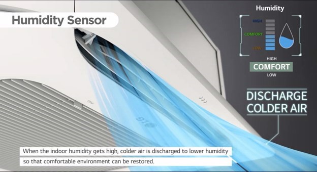 Elk HVAC-systeem heeft een goede thermostaat nodig om nauwkeurige temperaturen te garanderen. De HVAC-oplossingen van LG gaan nog een stap verder met vochtigheidssensoren. LG Multi V DUAL Sensing Control maakt gebruik van temperatuur- en vochtigheidssensoren om een nieuw niveau van comfort te bieden. Door de vochtigheidsgraad in een ruimte te detecteren, helpen vochtigheidssensoren het LG Multi V-systeem om de luchtstroom van binnenunits aan te passen wanneer de lucht te droog is. Als de omstandigheden buiten erg vochtig zijn, kan de vochtigheidssensor het systeem waarschuwen en koelere lucht naar binnen brengen voor een aangenamere omgeving.