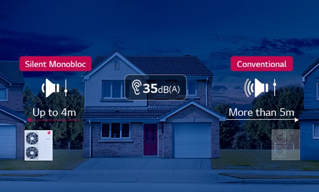 De LG Therma V Monobloc biedt al geruime tijd een betrouwbare oplossing die met alternatieve energie huizen overal ter wereld weet te verwarmen, koelen en van warm water te voorzien. Naast een milieuvriendelijke oplossing die onverwacht sterke prestaties levert, heeft de Therma V Silent Monobloc nog een bijzonder aangename eigenschap. Dit systeem werkt namelijk stiller dan ooit tevoren en dat vergroot de flexibiliteit wat betreft de plek waar de buitenunit geïnstalleerd kan worden. Het zorgt uiteraard ook voor complete rust, zowel binnen als buiten, de klok rond. De belangrijkste eigenschappen van de Therma V Silent Monobloc maken al snel duidelijk waarom een stillere oplossing zo’n wezenlijk verschil maakt.