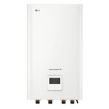 LG Split Wandmodel Hydrokit biedt een krachtige verwarmingsoplossing voor binnenruimtes. Het kan werken bij extreem koud weer zoals -25° en water verwarmen tot 65°. Het gebruikt de buitenlucht als warmtebron voor verwarming en warm water.