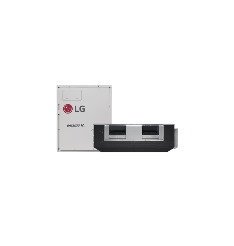 Multi V M vertegenwoordigt het modulaire type VRF dat de buitenunit opsplitst in compressor- en warmtewisselaarmodules om installatie binnenshuis mogelijk te maken, vooral in verborgen hoeken in binnenruimten. Het is efficiënt voor situaties waar buitenunits binnen moeten worden geïnstalleerd of voor gebouwen met een dak welke moeilijk te gebruiken is als buitenruimte.